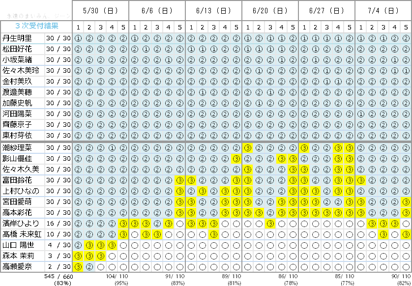 宮田愛萌、潮、影山、佐々久、富田、上村、高本が3次で全完売